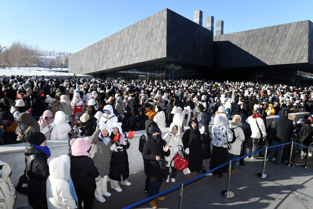 2024年1月15日,哈爾濱,侵華日軍第七三一部隊罪證陳列館門口排隊的游客整齊有序。