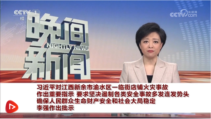 習(xí)近平對江西新余市渝水區(qū)一臨街店鋪火災(zāi)事故作出重要指示