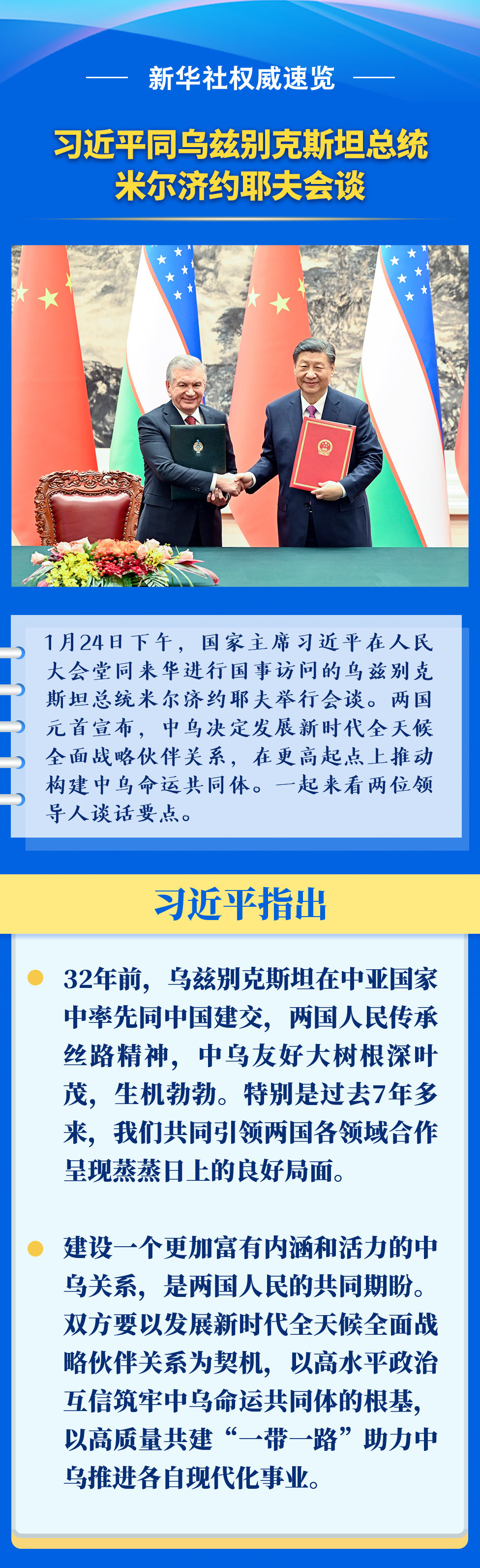 新華社權威速覽 | 習近平同烏茲別克斯坦總統(tǒng)米爾濟約耶夫會談