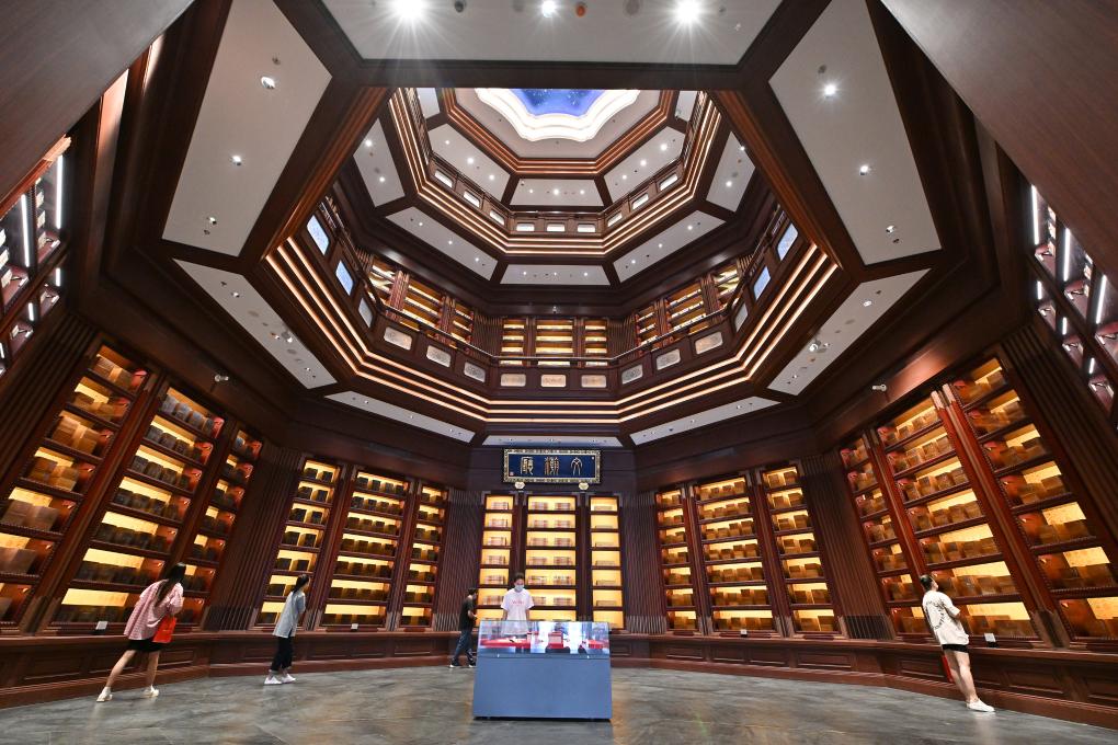 2022年7月30日,觀眾在中國國家版本館中央總館文瀚廳內(nèi)參觀。當日,中國國家版本館開館暨展覽開幕式在中國國家版本館中央總館舉行。新華社記者 李鑫 攝