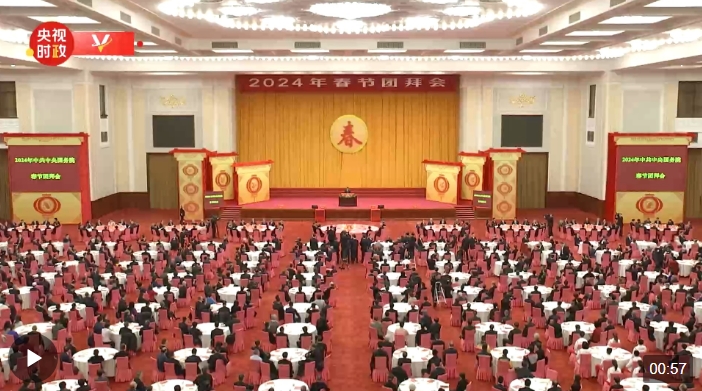 中共中央、國務(wù)院8日上午在人民大會堂舉行2024年春節(jié)團(tuán)拜會。中共中央總書記、國家主席、中央軍委主席習(xí)近平發(fā)表講話,代表黨中央和國務(wù)院,向全國各族人民,向香港特別行政區(qū)同胞、澳門特別行政區(qū)同胞、臺灣同胞和海外僑胞拜年。