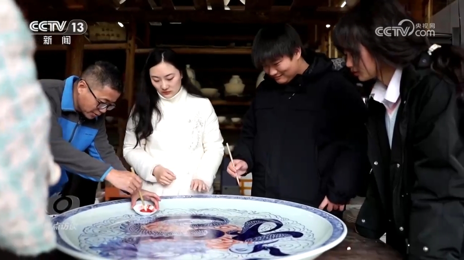 春節(jié)將近,景德鎮(zhèn)青花瓷畫(huà)坯技藝非遺傳承人孫立新和徒弟們正在制作迎接新年的龍盤,要在這個(gè)直徑1米的瓷盤上用龍的造型呈現(xiàn)出福字。