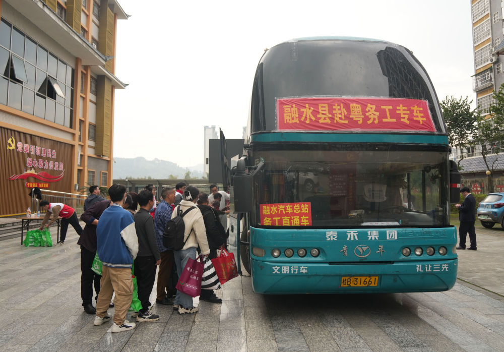 2月21日,廣西柳州市融水苗族自治縣務(wù)工人員乘坐赴粵專車返崗工作。新華社記者 黃孝邦 攝