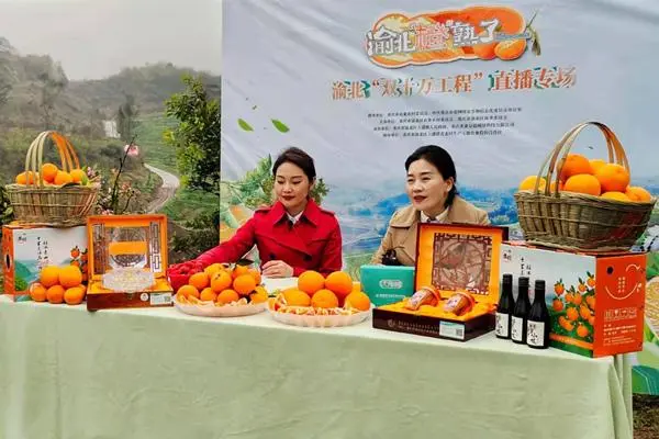 △2021年2月26日,在重慶渝北區(qū)大盛鎮(zhèn)青龍村舉辦的直播活動現(xiàn)場。