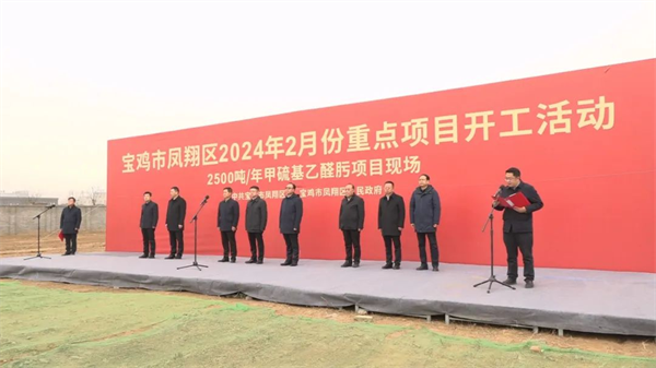 新年伊始,鳳翔區(qū)2024年2月份重點(diǎn)項(xiàng)目集中開工儀式在年產(chǎn)2500噸甲硫基乙醛肟項(xiàng)目現(xiàn)場(chǎng)舉行??偼顿Y7.04億元,年度計(jì)劃投資1.74億元的甲硫基乙醛肟、乳化炸藥生產(chǎn)線局部安全技術(shù)升級(jí)改造、寶雞市公安局鳳翔分局石家營派出所建設(shè)等11個(gè)重點(diǎn)項(xiàng)目集中開工。