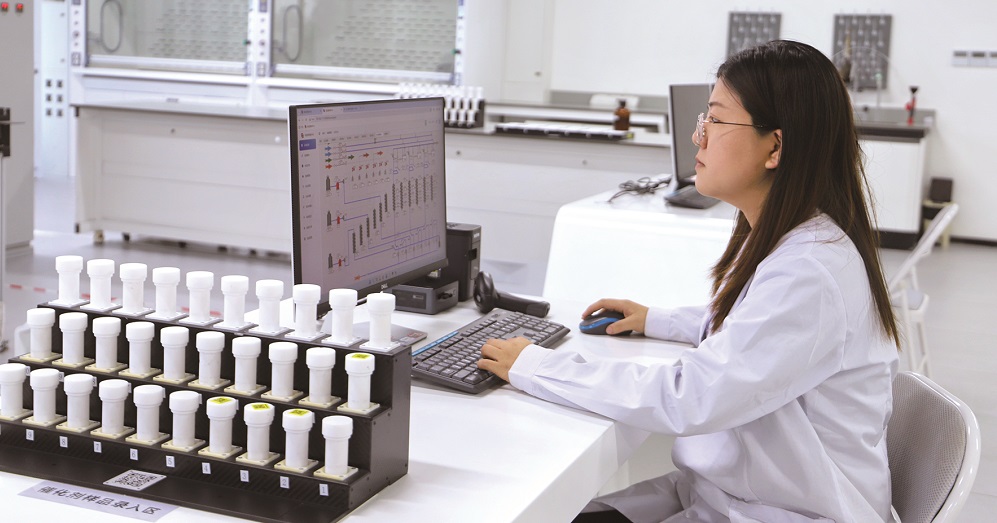 2月28日,在榆林中科潔凈能源創(chuàng)新研究院數(shù)智催化技術(shù)榆林市重點(diǎn)實(shí)驗(yàn)室,工作人員在做實(shí)驗(yàn)。