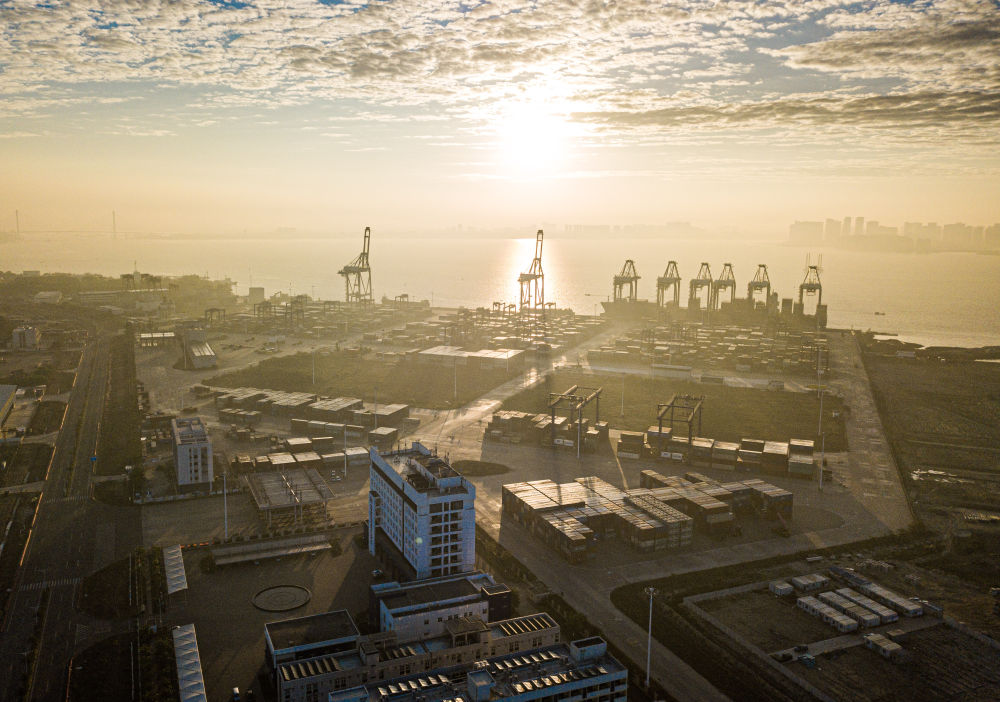 2024年1月1日在海南省洋浦經(jīng)濟開發(fā)區(qū)拍攝的海南自貿(mào)港集裝箱航運樞紐——洋浦國際集裝箱碼頭(無人機照片)。新華社記者 蒲曉旭 攝