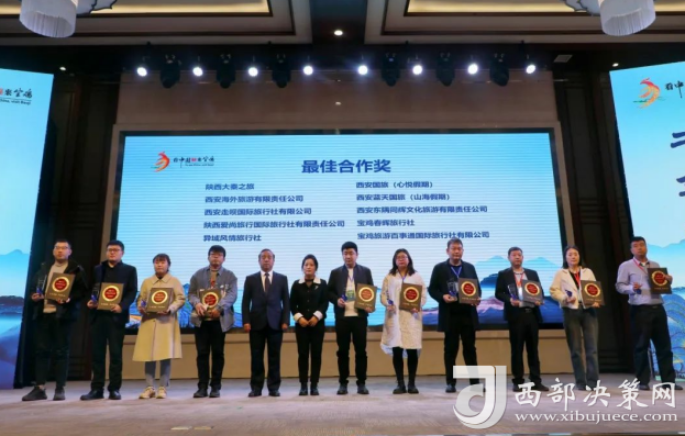 陳倉區(qū)文化和旅游局黨組書記、局長齊智雄推介陳倉區(qū)文化旅游資與會(huì)領(lǐng)導(dǎo)為“引客入寶”政策及“百萬游客進(jìn)陳倉”活動(dòng)優(yōu)秀合作旅行商等頒獎(jiǎng)。
