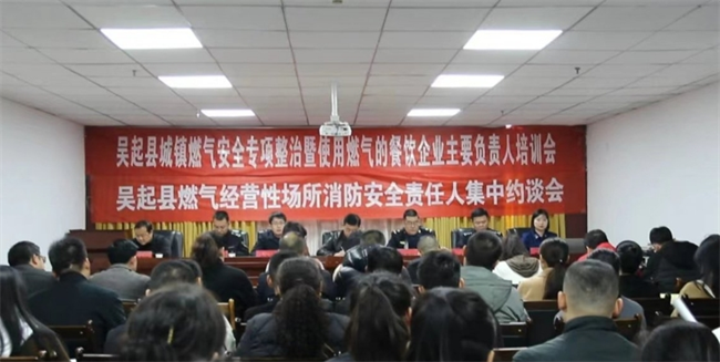 3月14日,吳起縣城管局聯(lián)合商務(wù)局、市場監(jiān)督管理局、公安局和消防大隊(duì)共同舉辦城鎮(zhèn)燃?xì)獍踩珜m?xiàng)整治暨使用燃?xì)獠惋嬈髽I(yè)培訓(xùn)會(huì),縣城所有餐飲企業(yè)和7小類用氣企業(yè)負(fù)責(zé)人參加培訓(xùn)。