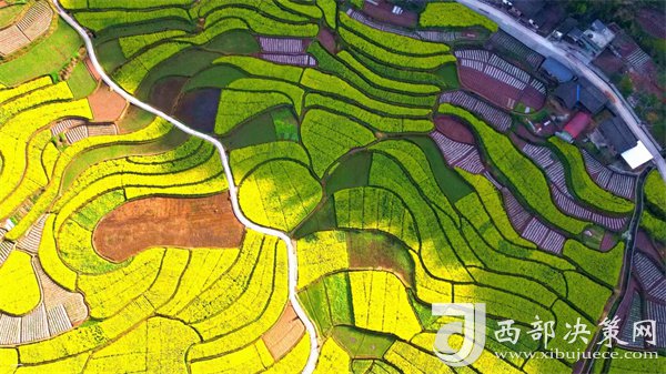 西部決策網(wǎng)訊 三月中旬,花紅柳綠,春雨綿綿。一腳踏進(jìn)鎮(zhèn)巴簡(jiǎn)池鎮(zhèn)李塘村,心都醉了。千畝田園油菜花進(jìn)盛花期,站在高處遠(yuǎn)望,金黃燦爛、層層疊疊的油菜花田依山傍水,清香撲鼻,美不勝收,與連綿的青山、清澈的河水、蜿蜒的公路、穿梭來往的游客、漂亮的民居、春耕的村民等交相輝映,構(gòu)成一幅美麗的鄉(xiāng)村振興“調(diào)色板”和春日鄉(xiāng)村畫卷。