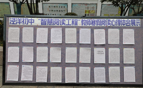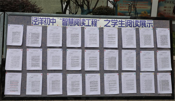 學(xué)校成立了專(zhuān)家組,從全校師生上交的2000余份作品中,遴選出75份優(yōu)秀學(xué)生作業(yè)成果和53篇教師優(yōu)秀閱讀成果,在校園集中布展。大家的智慧成果引來(lái)了廣大師生的駐足欣賞,成為涇中開(kāi)學(xué)后一道靚麗的校園風(fēng)景。